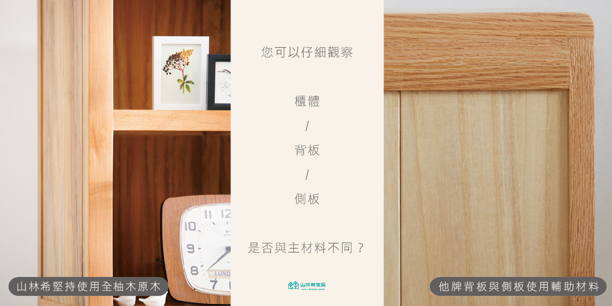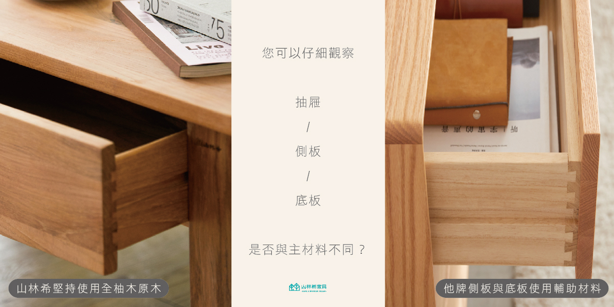 但在抽屜、背板、底板這些細節則改成輔助材質,