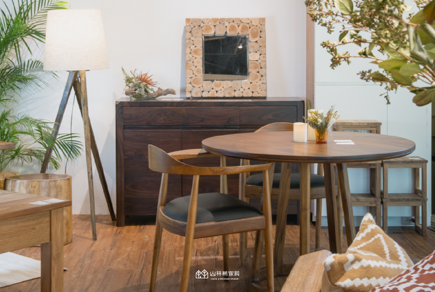 可以選擇簡約線條和實用功能為主,以中性色調為基礎的原木家具。