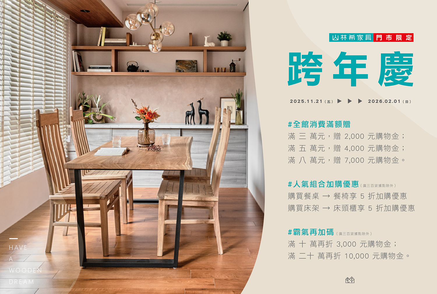 購買任意餐桌 → 餐椅享 5 折加購優惠。