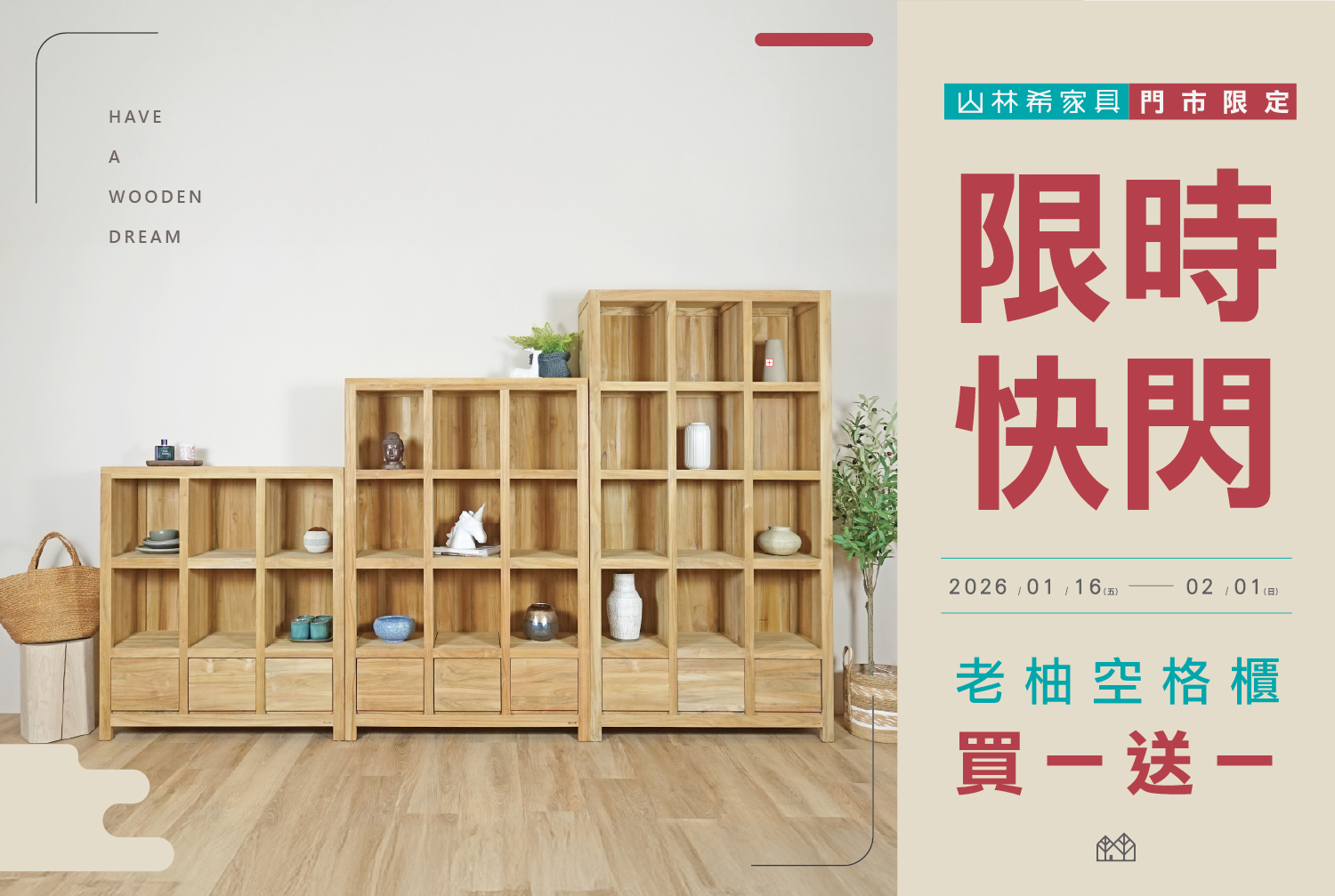 限時快閃|老柚木空格櫃 3.0 | 買 1 送 1